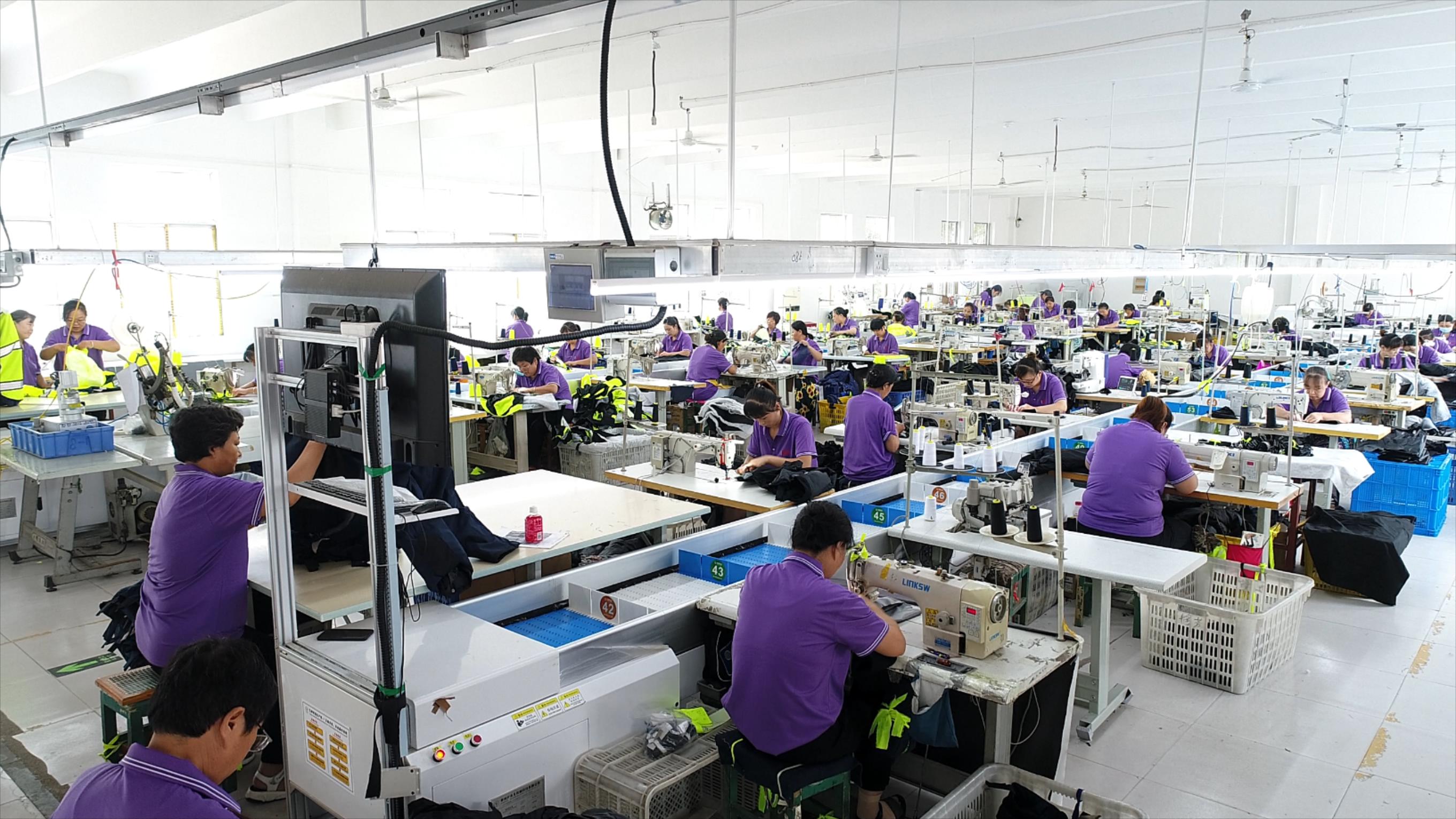 在您对样品进行审查、评估和批准后,我们在专门的服装工厂开始批量生产,确保批准样品的质量要求和技术规格。我们的专业工厂配备了先进的机械,如针缝机、条形色钉机、图形绘图仪、激光切割机、封缝机、条带折叠机、新型电动喷墨模板切割机,保证高效的生产流程、受控的质量、并准时交货。